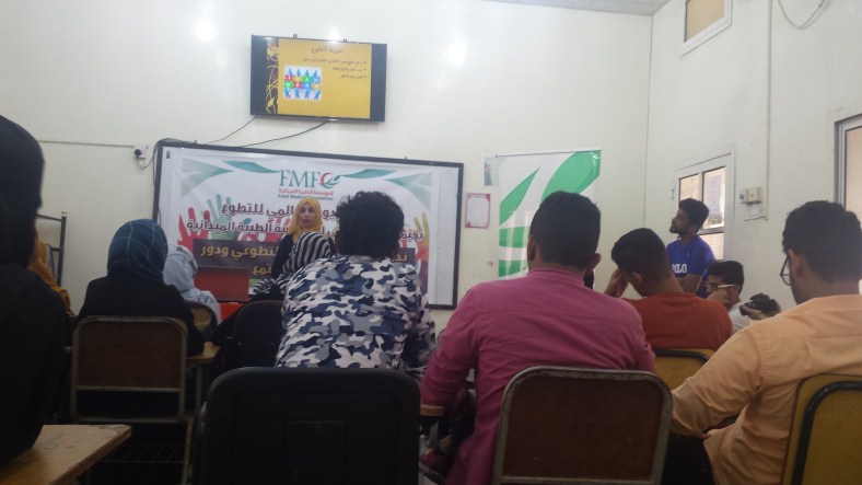 نظمت مؤسسة الطبية الميدانية بالتنسيق والشراكة مع كلية اللغات ندوة حول أهمية العمل التطوعي والذي يصادف اليوم العلمي للعمل التطوعي ، وقد قدم كلا من المدربين نبذة عن الاعمال التطوعية واهميتها في حياتنا، وقد استهدفت الندوة طلاب وطالبات كلية اللغات من جميع الاقسام .