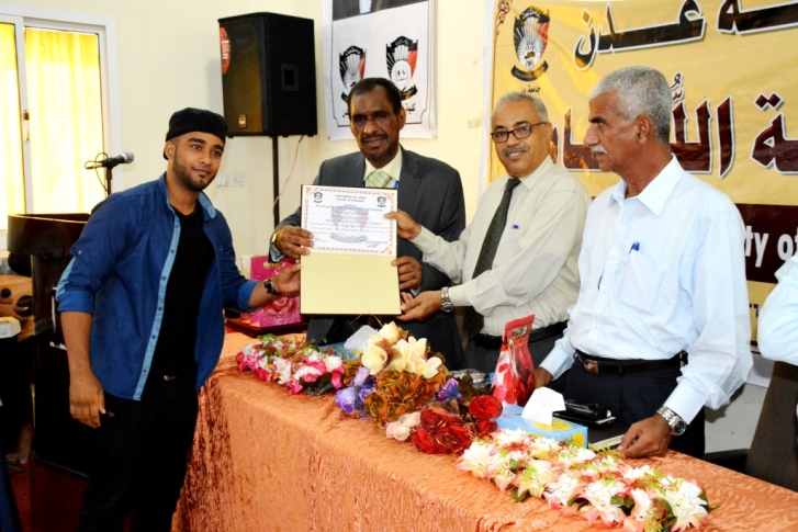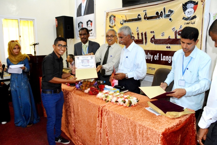 عقب ذلك قام الدكتور/ محمد العطاس نائب رئيس الجامعة لشؤون الطلاب، والدكتور/ جمال الجعدني عميد كلية اللغات، والأستاذ/ محمد حسن سالم الأمين العام لجامعة عدن بتكريم الطلاب الفائزين في المعرض العلمي لمشاريع الشباب، والفائزين في مسابقة الخطابة العامة في اللغة الإنجليزية، وكذا الفائزين في المسابقة الأولى التي تقيمها الكلية للترجمة الفورية، بالإضافة إلى الفائزين في مسابقة التحفيظ، والمسابقات الثقافية الغناء والعزف والرسم والتصوير، فضلاً عن تكريم فريق الكلية لكرة القدم وتنس الطاولة المشاركين في بطولة الجامعة.