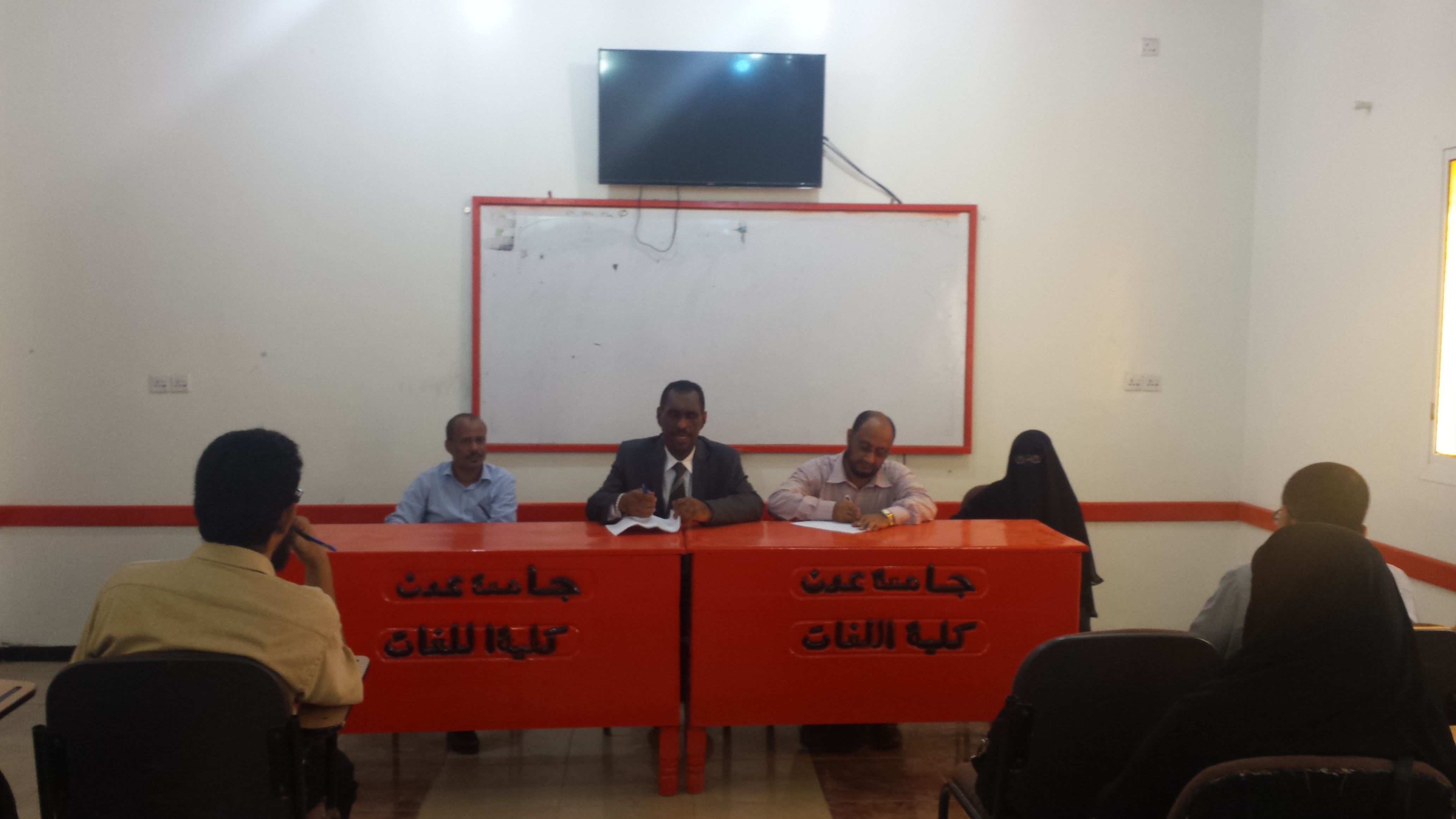 حيث أشار الاجتماع الى أن الدراسة سوف تبدأ بمشيئة الله تعالي يوم الاحد الموافق 2/9/2018 ، ونبه إلى الحضور الكامل وتنفيذ المحاضرات بكامل وقتها المحدد لأي عدد يحضر من الطلالب وعلى جميع المدرسين التشديد على تحضير الطلاب واتباع مبدا الثواب والعقاب في درجات المحصلة المقررة للغياب والنشاط. وأكد الاجتماع على اتخاذ كل مايلزم والترتيب الجيد لامتحانات المفاضلة للدراسات العليا برنامج ماجستير ترجمة المقررة يوم السبت 1/9/2018