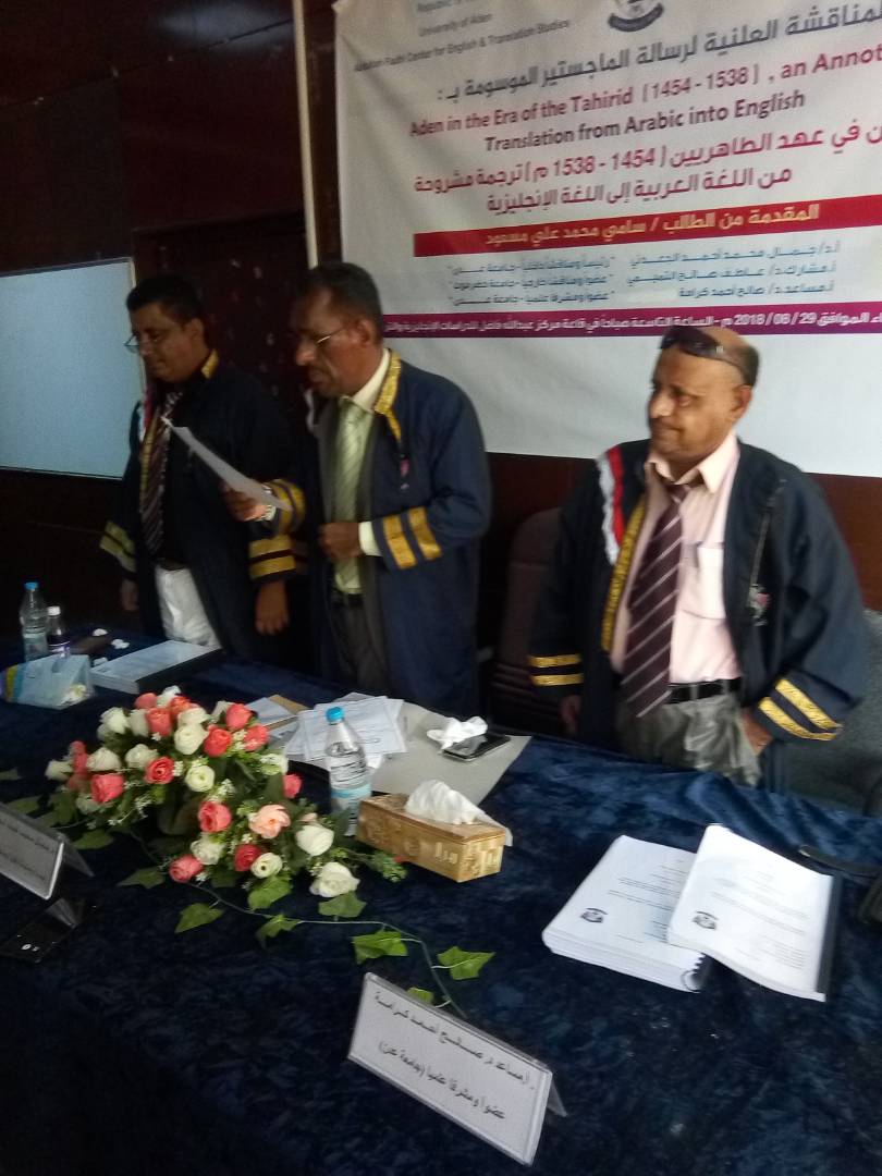 حصل الاستاذ سامي محمد علي مسعود درجة الماجستير في الترجمة في مركز عبدالله فاضل للدراسات الانجليزية والترجمة الموسومة :