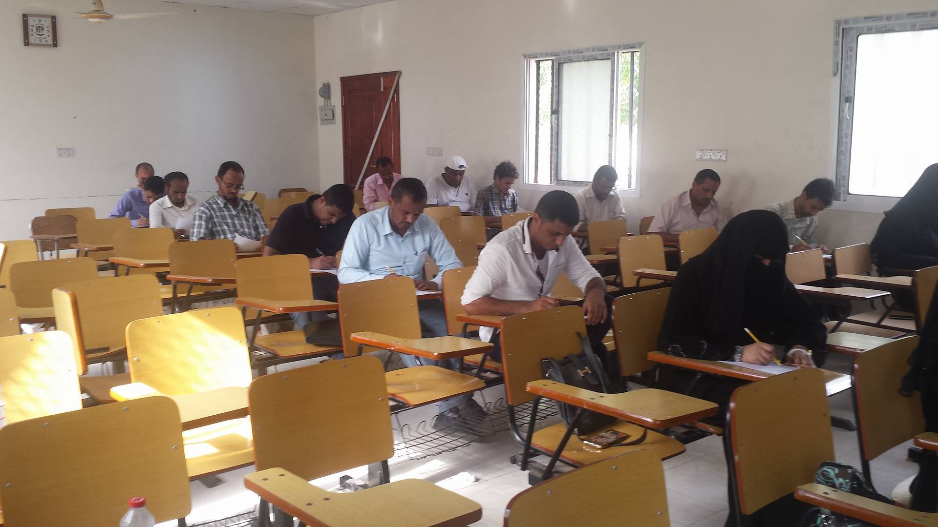 تم صباح اليوم امتحانات لجميع الدورات في اللغة الانجليزية لطالبي الحصول على شهادة الكفاءة في اللغه الانجليزية . واشار عميد الكلية بان الطلاب والطالبات الذين يمتحنون اليوم هم من طلبة الدراسات العليا لبرنامجي الماجستير والدكتوراة من مختلف الكليات في جامعة عدن وبعض الطلاب طالبين التقوية في مجال اللغه الانجليزية. ونوه عميد الكلية بان جميع القاعات الدراسية المخصصه للدورات لجميع المستويات مجهزة باحدث انواع الاجهزة الحديثة مثل الشاشات الذكية واجهزة التكييف وغيرها وتمنى عميد الكلية البروفيسور جمال الجعدني التوفيق والنجاح لجميع الطلاب والطالبات
