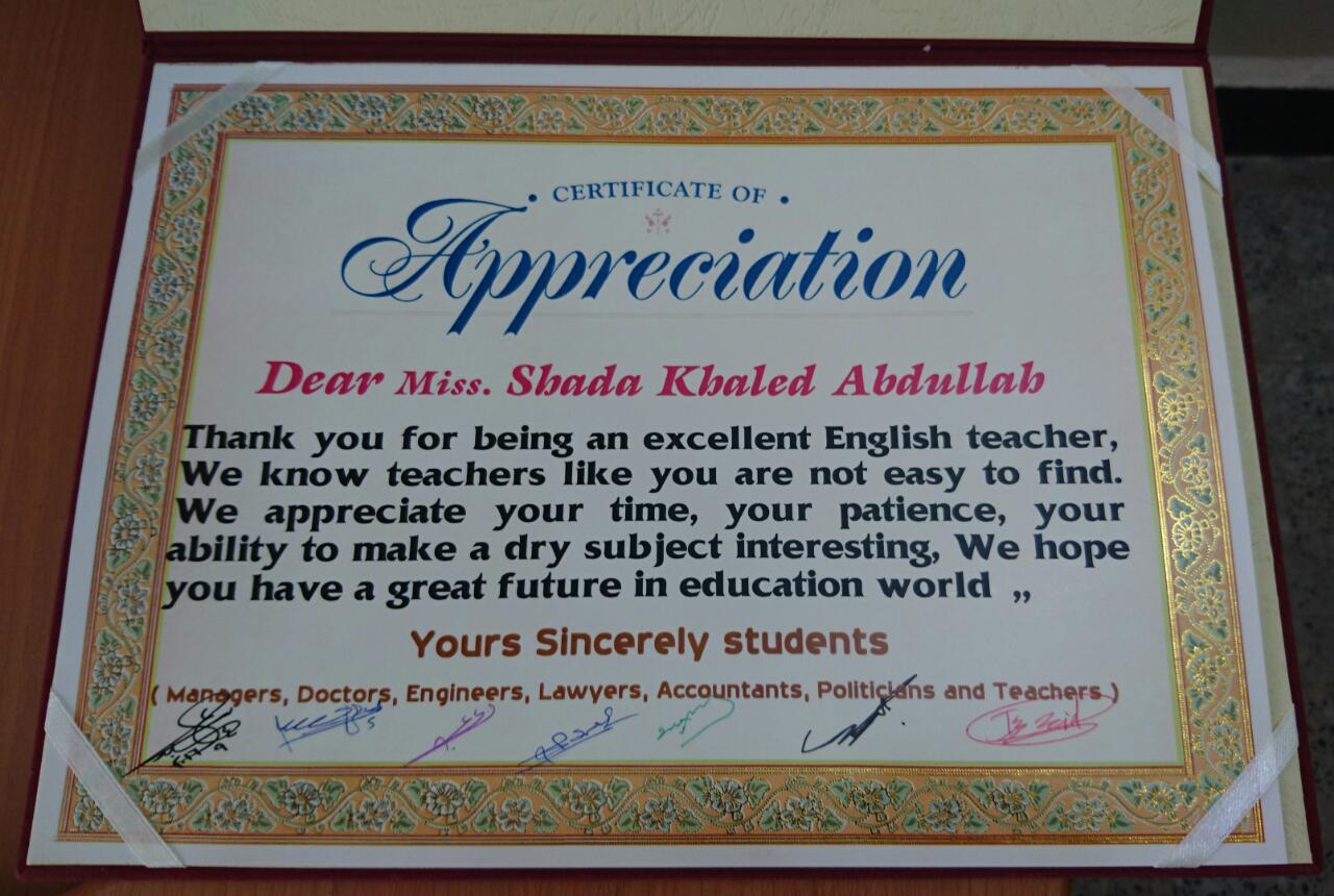 اقام طلاب الدورة الرابعة بتكريم مدرستهم الاستاذة شذى خالد بمناسبة انتهائهم من الدورة والامتحان