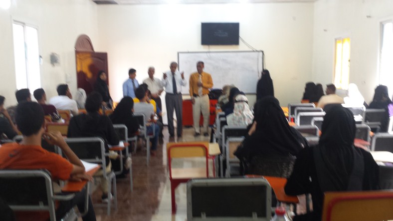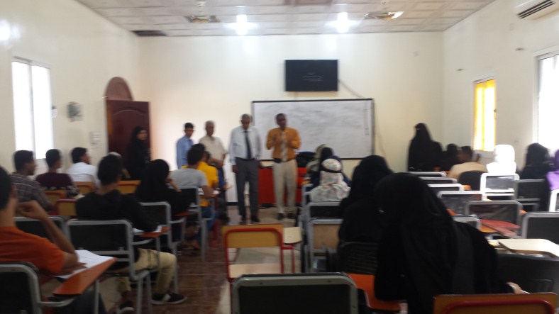 دشنت كلية اللغات عدن ، صباح اليوم الثلاثاء 3/1/2017م امتحانات الفل الأول ( الدور الأول ) للعام الأكاديمي (2016/2017م) بحضور نائب رئيس الجامعة لشؤون الطلاب ، الدكتور/ محمد موسى العبادي، ومدير عام الشؤون التعليمية، الدكتور/ عباس علوي فرحان.
